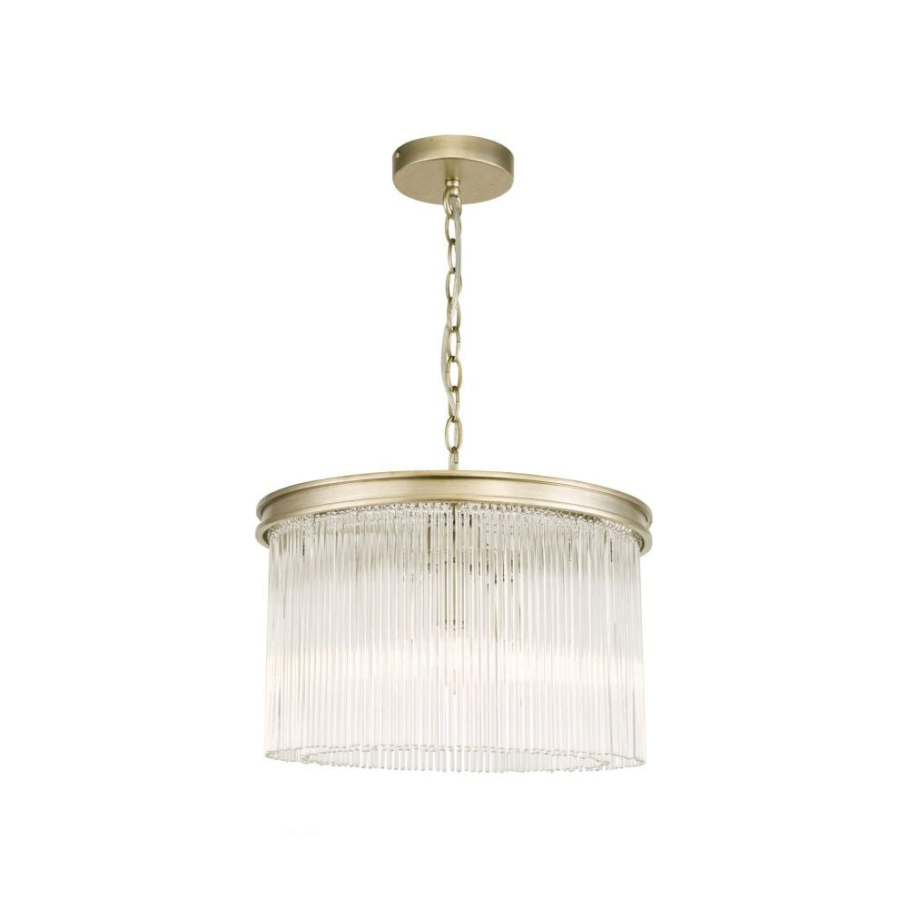 With its sophisticated champagne finish, painted by hand, this pendant light is the perfect centrepiece for a living room, dining room or bedroom. A black, twisted braided cable is included. You can adjust the drop when it is installed to suit the height of your ceiling (38–86cm). Bulbs not included; takes 3 x 40w max SES candle light bulbs.
