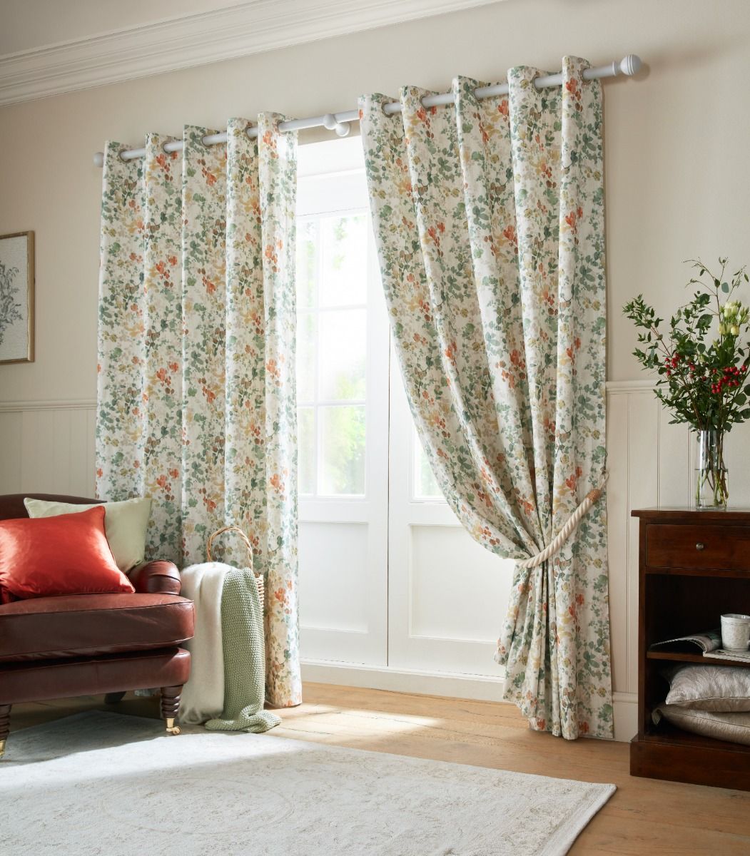 Bring the outside in with the beautiful Old Castle leaves curtain. Stunning leaves trail across this sophisticated design in tones of greens, terracotta, and sand. Printed on to soft, cotton linen with eyelet header.
