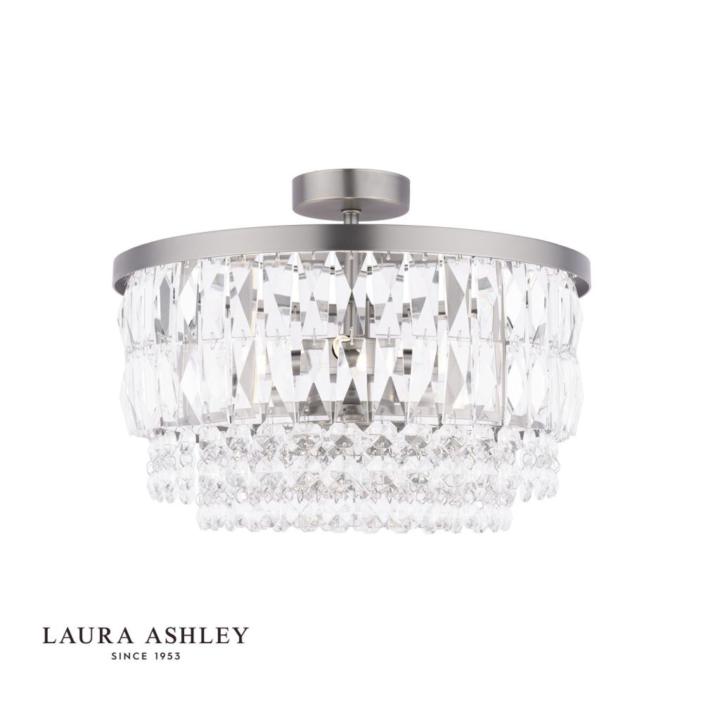 The Rhosill Semi Flush light Laura Ashley features stunning facetted glass crystals with a gorgeous pewter metal accents. Semi flush fittings are suitable for low ceilings and small rooms, plus they have a neat finish with no visible cables. This statement ceiling light would complement any room.