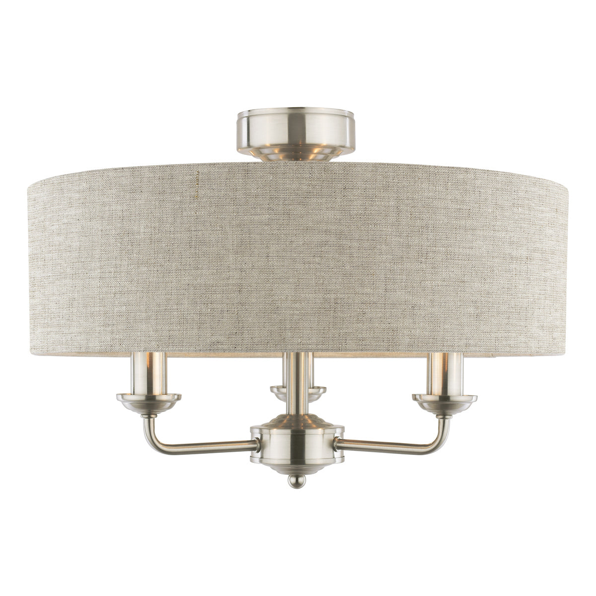 This chic Laura Ashley Sorrento Semi Flush Ceiling Light features three lights encased in a single contemporary drum shade in a natural slubbed linen with a metallic silver inner. The three-light ceiling pendant comes in a painted black finish, adding a sophisticated atmosphere to your dining or living area. We recommend the use of LED bulbs as they are more energy efficient, typically last at least 15000 hours and use 90% less energy than a traditional halogen bulb. Less energy means lower electricity costs.