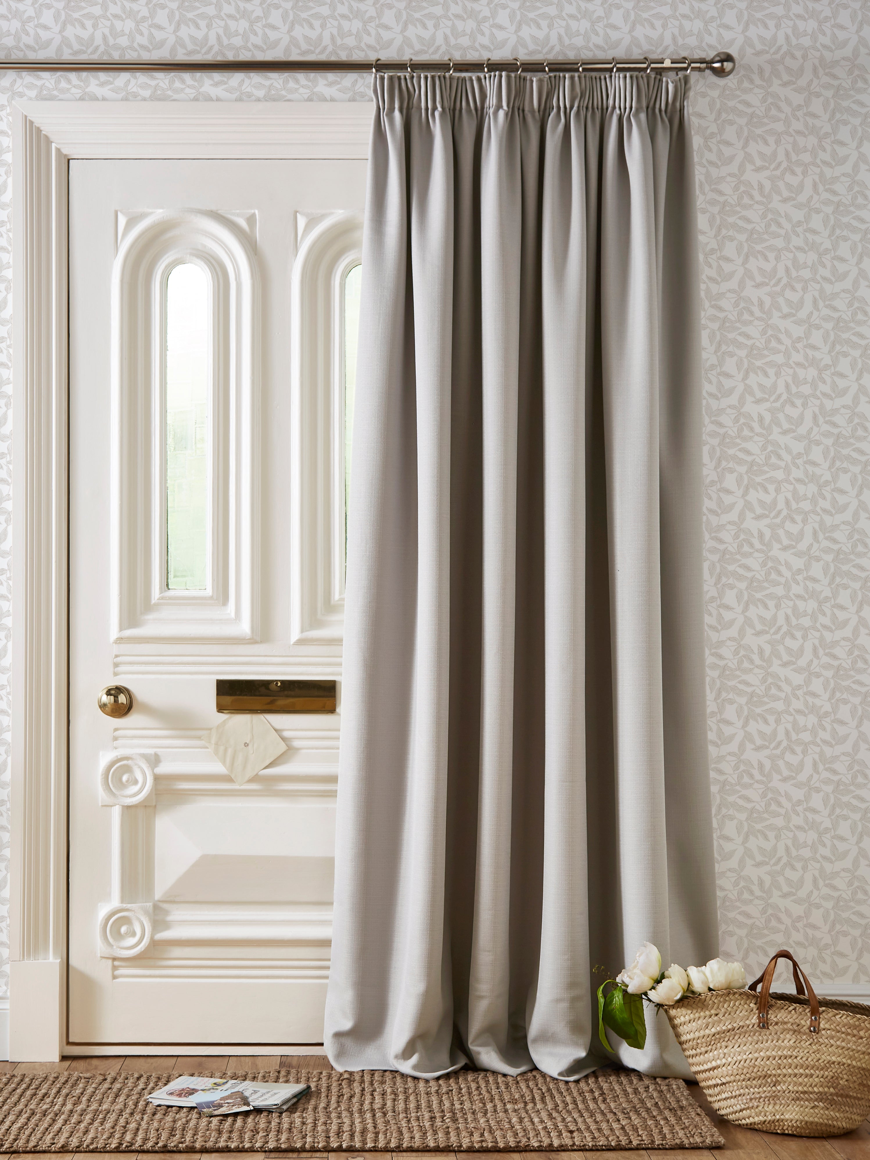 The Laura Ashley Stephanie in dove grey features a relaxing look with these 100% cotton door curtains, elevate your interiors whilst keeping the draughts out with this beautifully elegant design. This curtain has a thermal lining that helps keep the room warm in winter and cool in summer and is 168 x 213cm big.