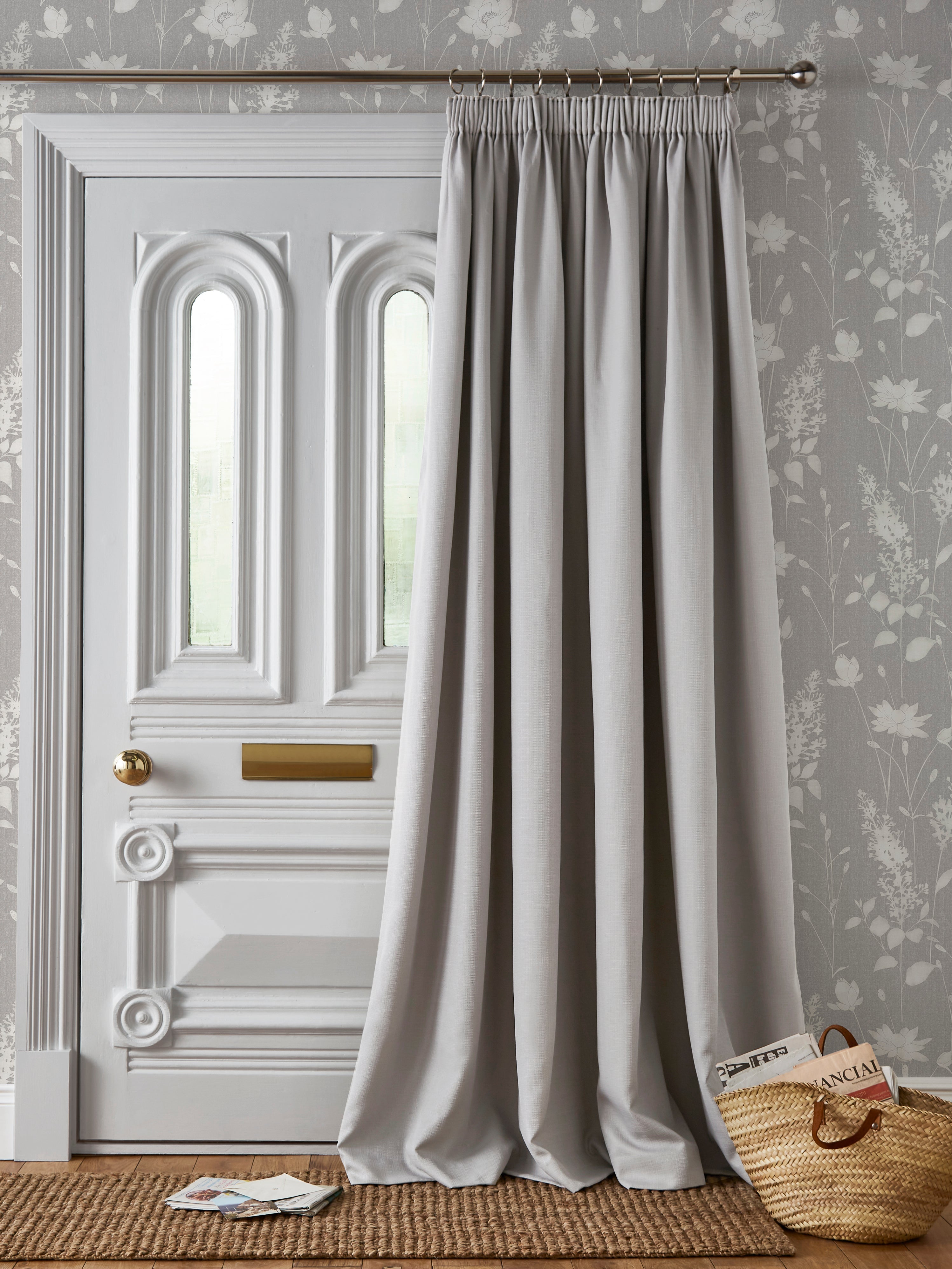The Laura Ashley Stephanie in steel features a relaxing look with these 100% cotton door curtains, elevate your interiors whilst keeping the draughts out with this beautifully elegant design. This curtain has a thermal lining that helps keep the room warm in winter and cool in summer and is 168 x 213cm big.