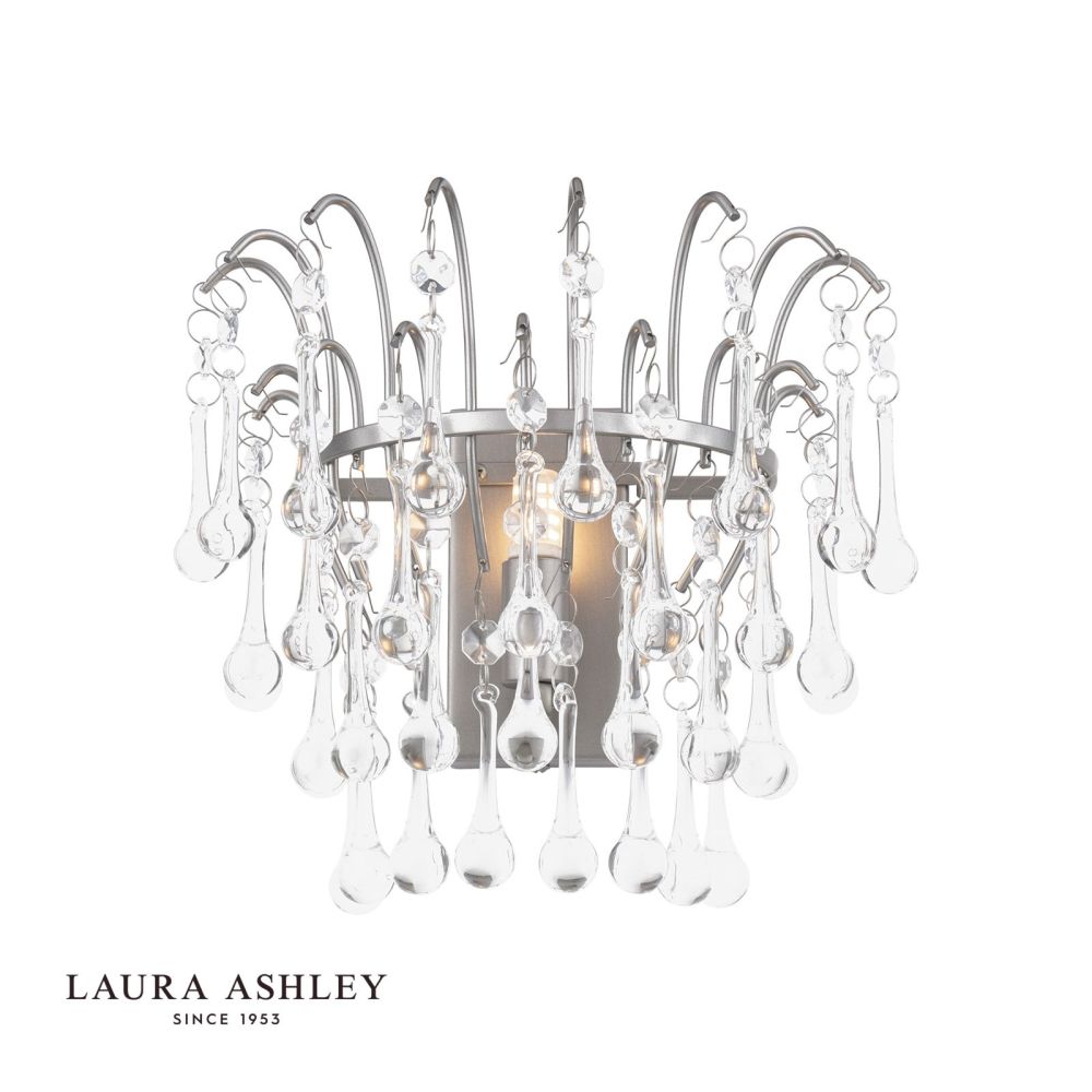 What’s not to like about this gorgeous willow wall light with long crystal raindrops? Painted in pewter with a satin finish, the Willow pendant ceiling light from Laura Ashley is bright and pretty. This ceiling pendant fitting has a matching finish ceiling rose and hanging chain plus a discreet clear cable included. Height is adjustable at the point of installation.