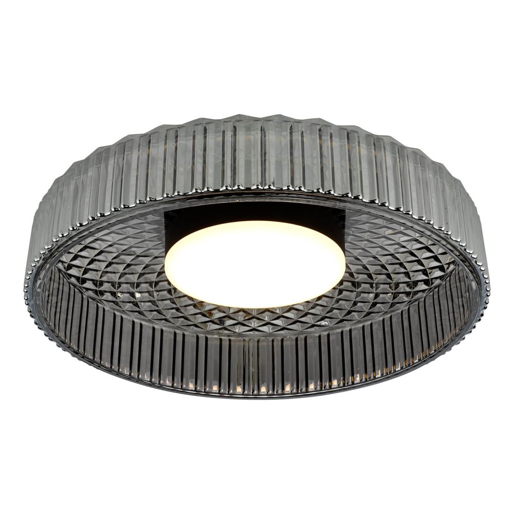 The Leena Flush Light, a stylish and contemporary lighting solution for your space. This flush light features a modern satin black finish and a ribbed smoked glass shade, adding a touch of modern elegance to any room. Lit using energy-efficient LED technology, the Leena Flush Light provides ample lighting while reducing energy consumption. Perfect for various settings, this circular light fixture is ideal for illuminating hallways, bedrooms, or living rooms with its sleek and minimalist design.