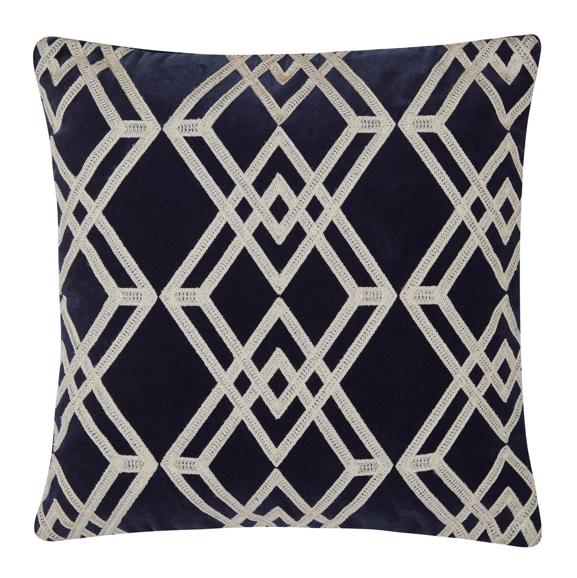 The Maddison cushion is feather filled and 100% cotton, its a really striking cushion with the geometric embroidered detailing it will stand out ad be a nice backdrop for many room schemes, the dark midnight colouring makes the embroidered patter stand out in contrast. it would be gorgeous against a white bedlinen or any of the Laura Ashley bedding and ready made curtains.