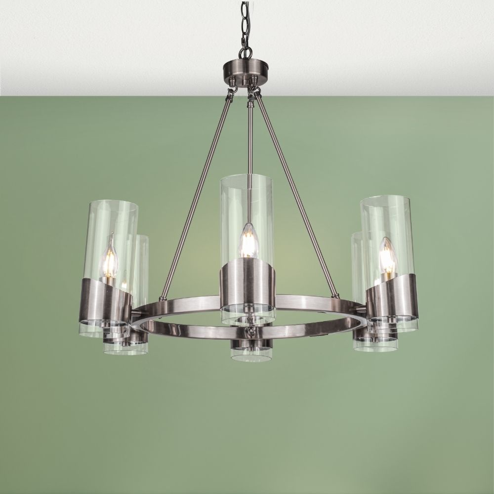 Elevate your space with the Rossa 6 Light Pendant in Satin Chrome, a modern lighting fixture blending sleek design with contemporary sophistication. Its satin chrome finish exudes elegance, creating a captivating centerpiece for any room. With six radiant lights, it casts a clean glow ideal for dining rooms, kitchens, or any space needing modern illumination. The pendant seamlessly merges minimalist aesthetics with functional lighting, offering both style and practicality.