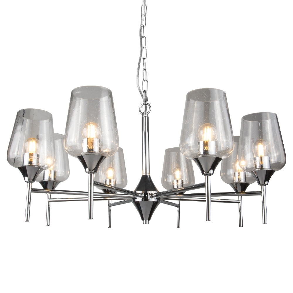Introducing the Vino 8 Light Polished Chrome Ceiling Light, a luxurious and contemporary fixture. Crafted from polished chrome, it exudes elegance and sophistication. With eight lights, it provides ample illumination for large spaces.