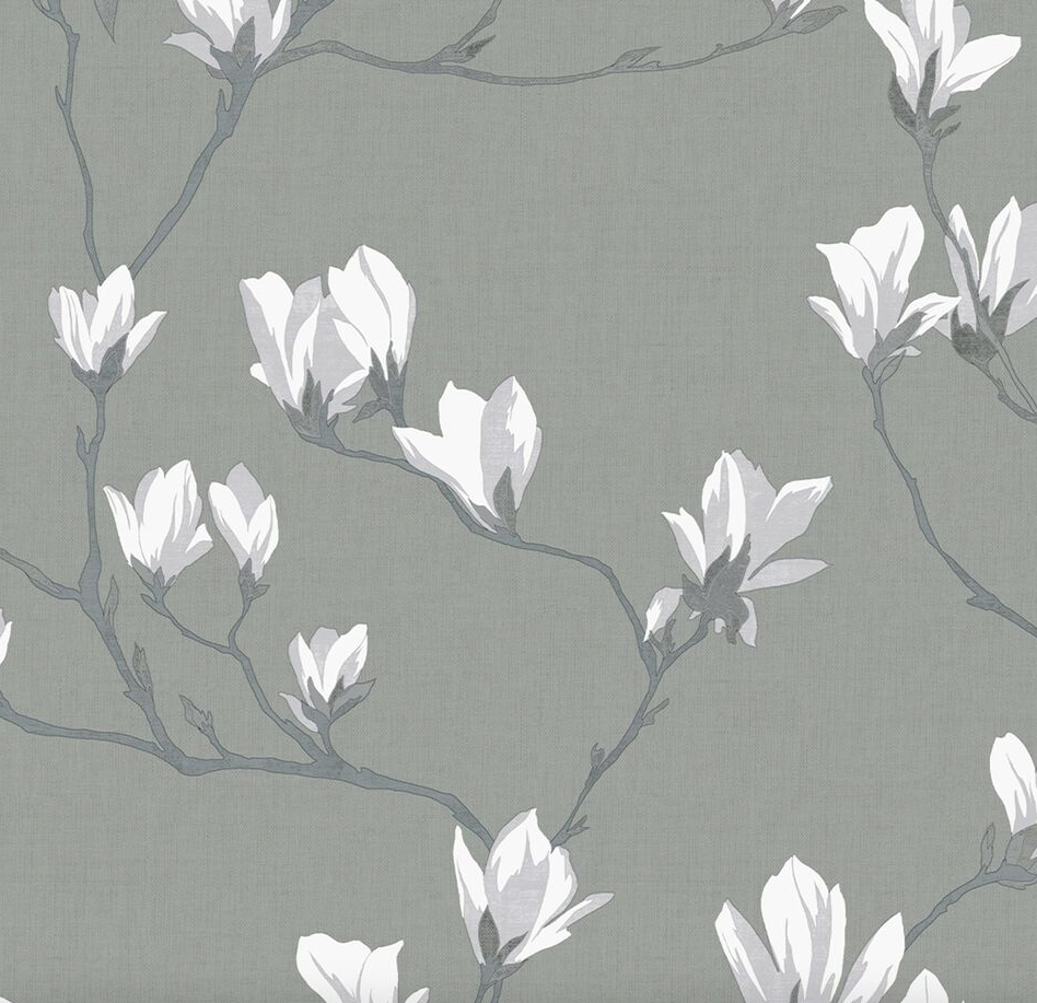Our Magnolia Grove print contains slender branches of fat, waxy magnolia flowers on a contemporary slate grey blue background. Simple but beautiful.