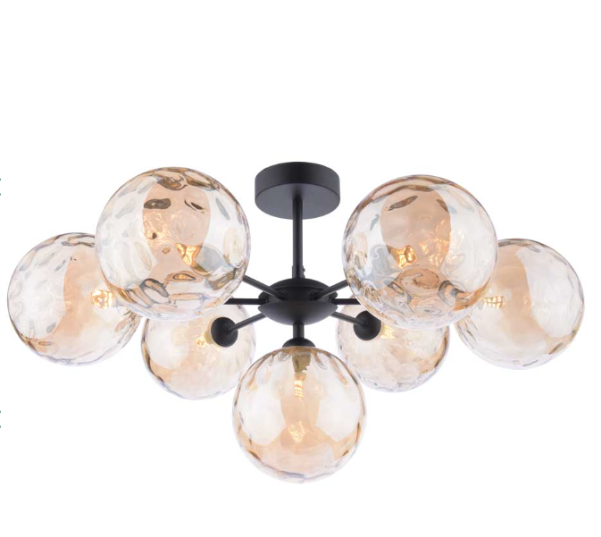 The Cohen 7 light semi-flush ceiling light in matt black and large Champagne glass shades is a more modern stripped down take on the sputnik chandelier popularised in the sixties when the space race was capturing the imaginations of designers and home owners alike.