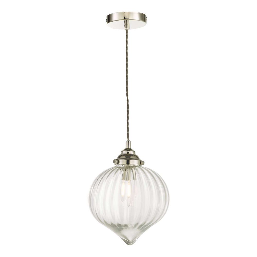 The Mya single pendant features a traditional drop shaped mouth blown glass with a more contemporary soft waterfall ribbing, gently diffusing the light. Complemented with polished nickel metal work and 1 metre of grey braided cable adjustable on installation. the Mya is great as a kitchen pendant light, we think it will look great in a set of 3 over a breakfast bar, or in a cluster over a dining table, equally we can see it being hung in the bedroom, we’d love to see how you use it