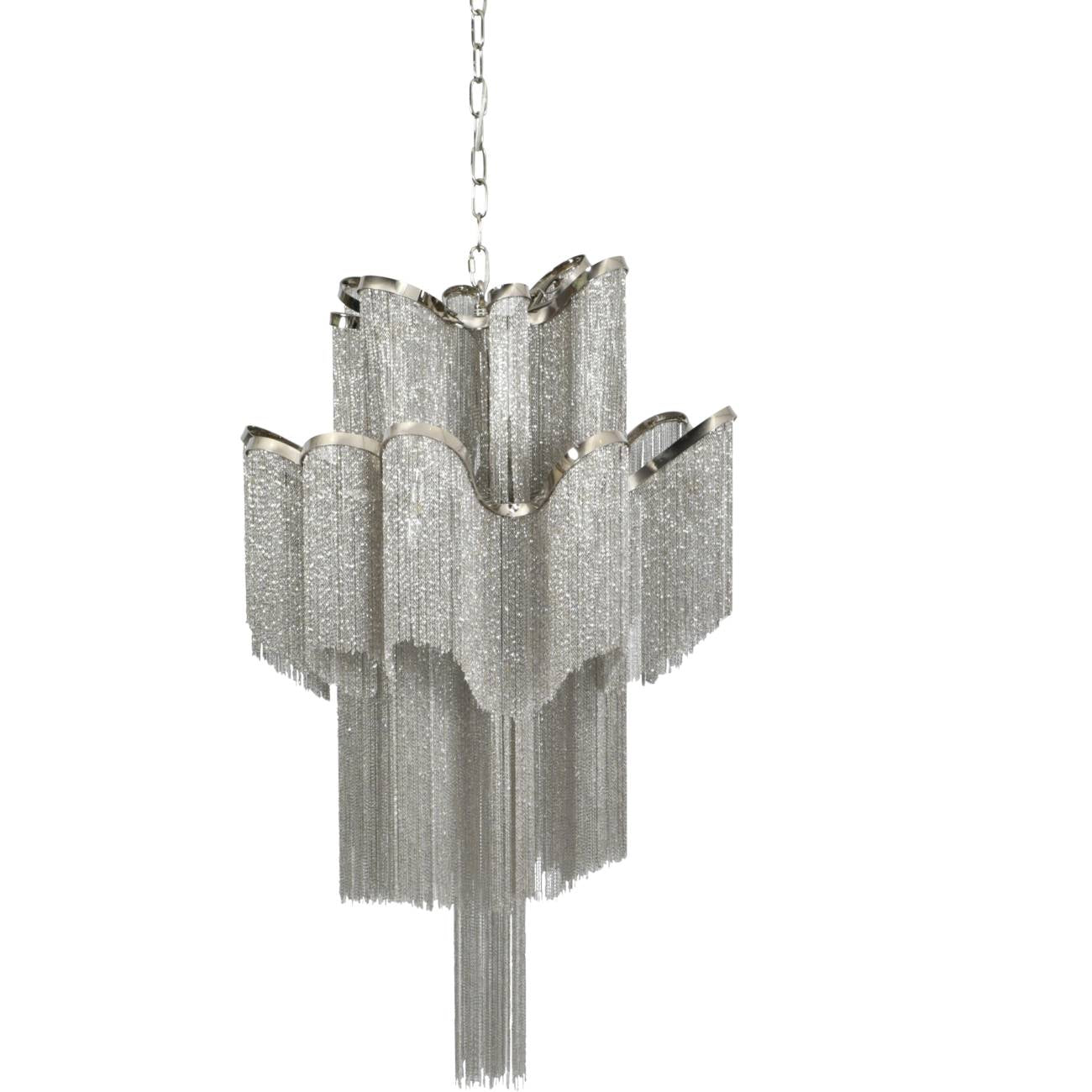 Part of the Niagara collection, this stunning 12 light pendant chandelier is reminiscent of cascading waterfalls; hundreds of chain droplets are suspended from a floating nickel frame.