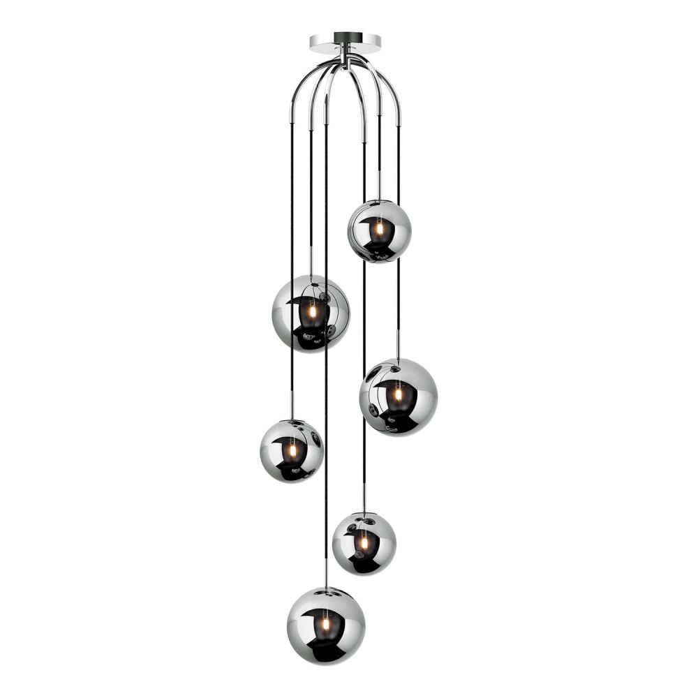The Nico 6 light cluster pendant is a cluster pendant on a grand scale. Finished in polished chrome with oversized smoked glass shades. The curved arms add a modern feel with a smaller diameter backplate offering a more elegant look. The Nico cluster pendant is a great spectacular stairwell piece or, if height allows, could make a stunning statement hung over a dining table.