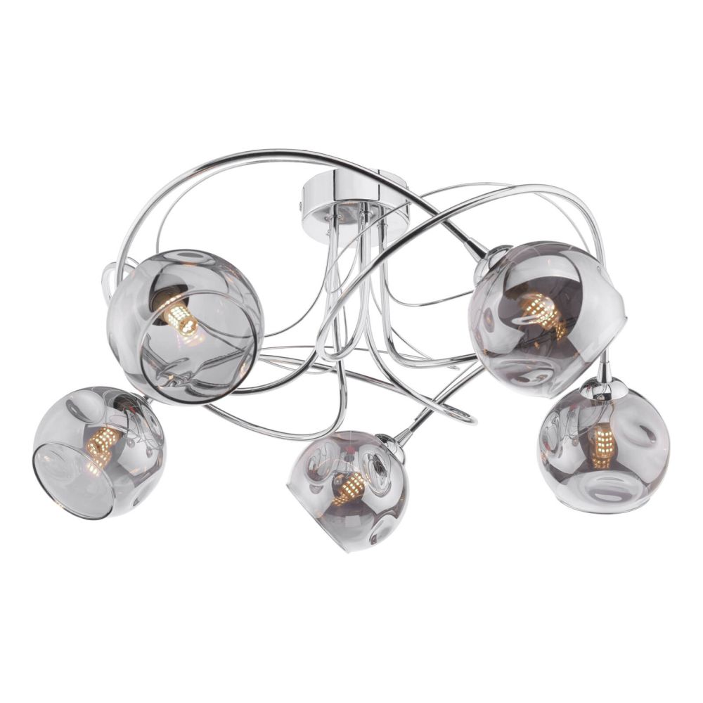 The Onawa 5 light semi flush ceiling light in polished chrome and smoked organic glass. The polished chrome metal work twists and turns with an organic look complemented by highly reflective smoked glass shades giving an almost mirror-like appearance when off and lighting with reduced glare when on.