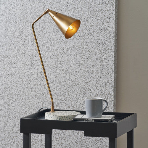 The stunning Pavonazzo Desk Lamp, produced in collaboration with Designers Guild, has a terrazzo base with chips in green/grey hues and an evocative brushed brass stem and shade. This contemporary desk lamp will add an elegant touch to your home office.