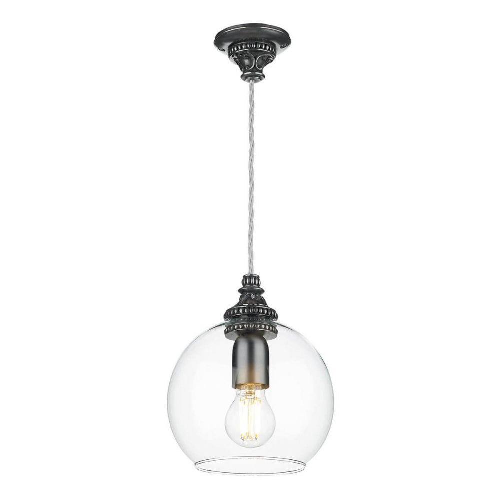The metal detailing on the Pearl pendant can work well in a traditional or modern setting it comes with a round clear glass shade and a silver fabric twisted cable. Made to order by David Hunt Lighting we would recommend adding a vintage filament bulb to add to the look.