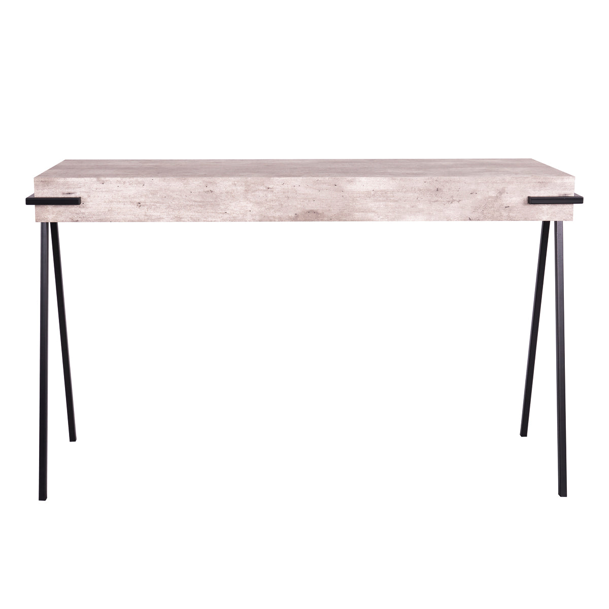 A thick rustic concrete table top is the attraction of this console table with black angular legs.