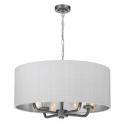 The Sloane pendant has wonderful detailing on the frame, from David Hunt Lighting, the hammered look of the fitting and ceiling rose in a pewter finish with a very decorative chain which adds to the appeal. This pendant will look great in any room or an office or restaurant, you can specify the colour of the shade and the lining is available in three finishes. The Sloane pendant can be mixed with other products from the range, table and floor lamps and wall lights, all help to dress any area where needed.