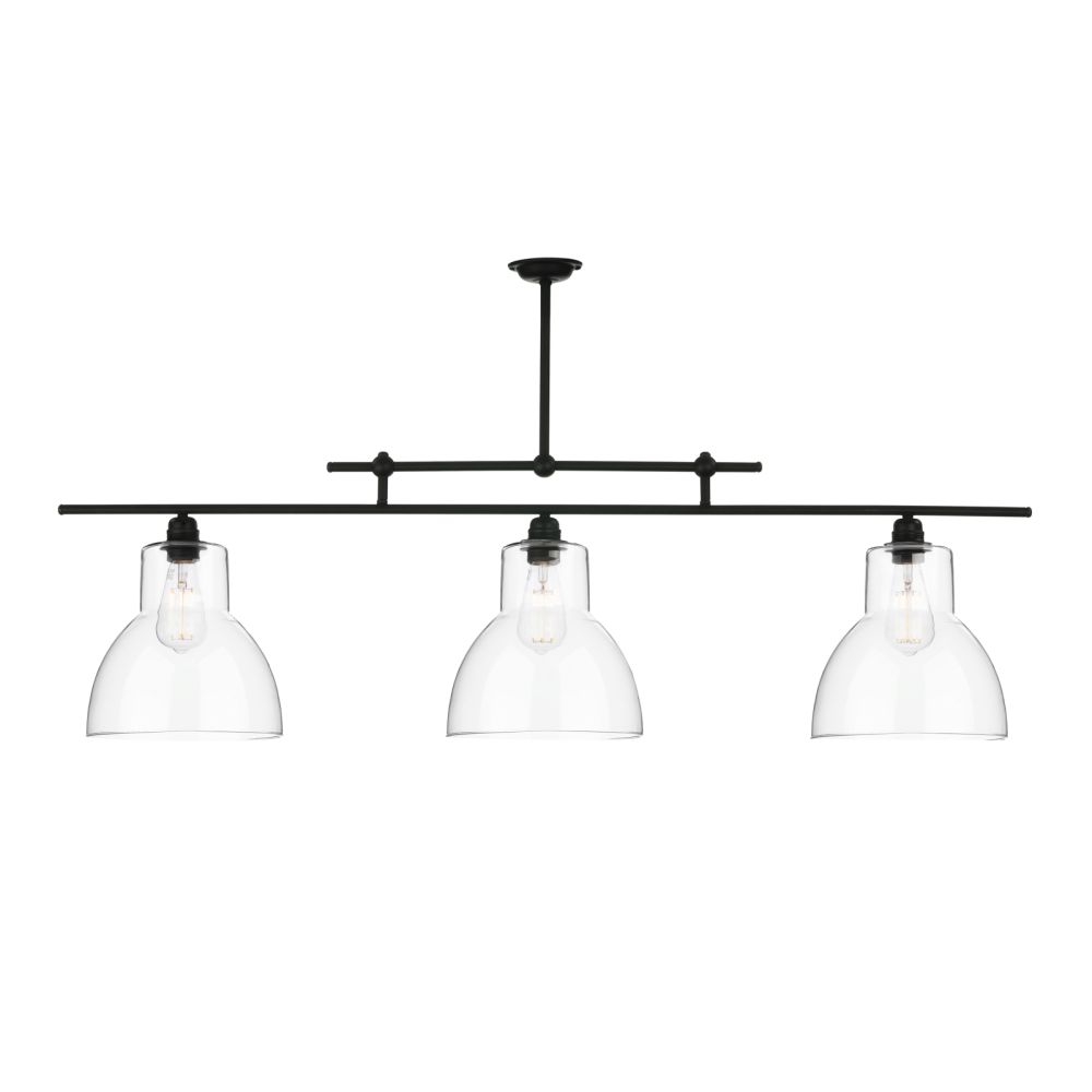 The David Hunt Lighting design team have added the 3 bar pendant to the range, great for an island or dining table area. Finished in black with clear glass, combine it with the other lights in the range to complete a larger space.