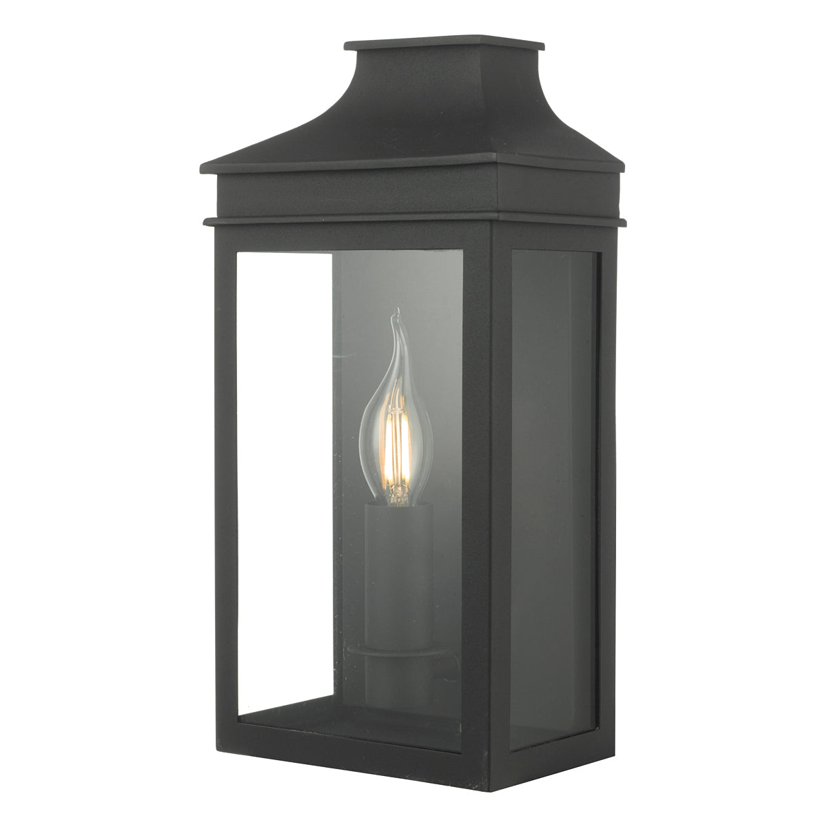 A traditional styled elegant wall light, finished in black this coach lantern has one light source and will look great with an additional vintage led candle bulb. Its slimline design would make it perfect as a pair either side of an entrance.