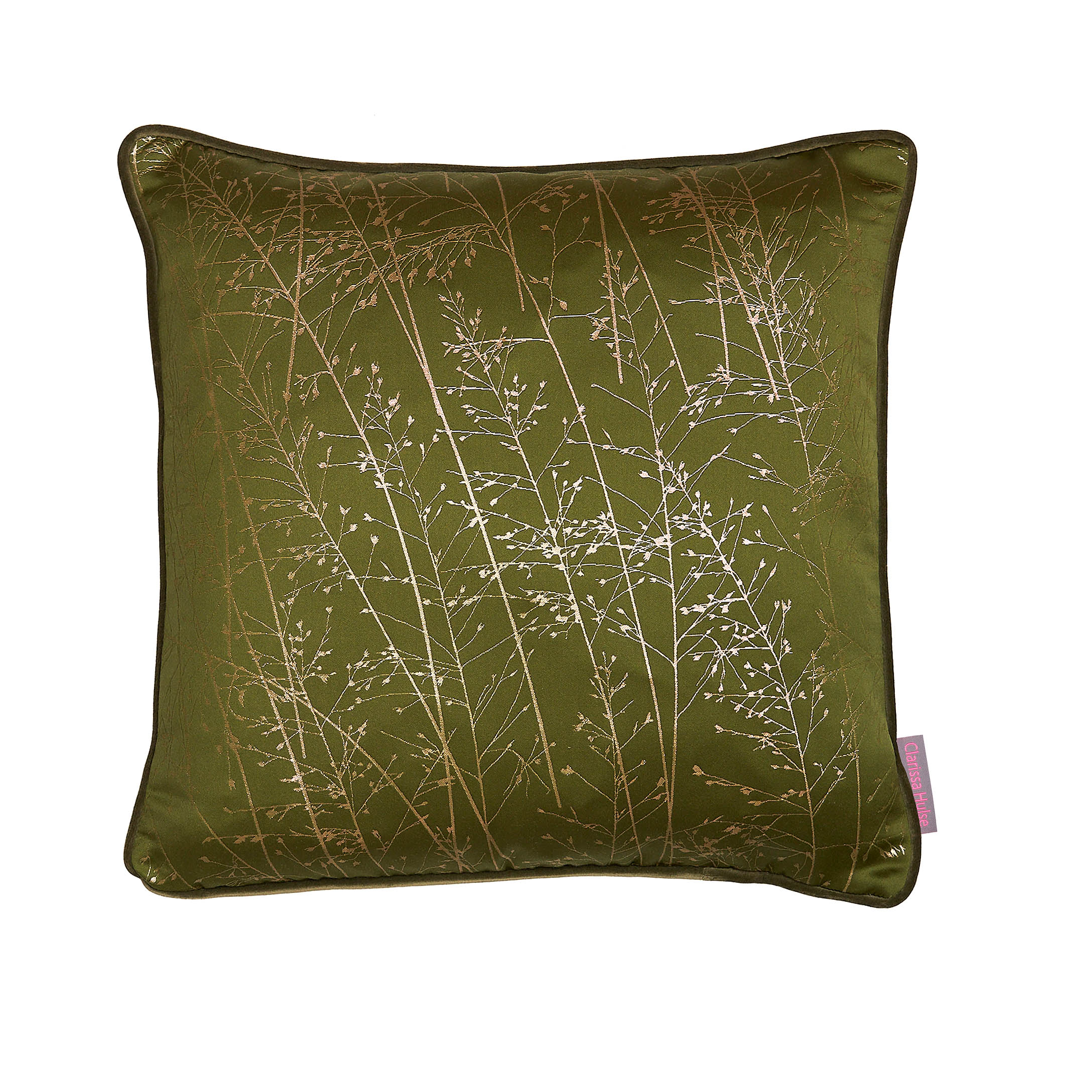 You can almost hear the whispering grasses of this luxurious peacock and metallic gold piped jacquard cushion. Clarissa photographed them swaying in the summer wind and created this composition back in the studio to celebrate their wild, organic beauty.