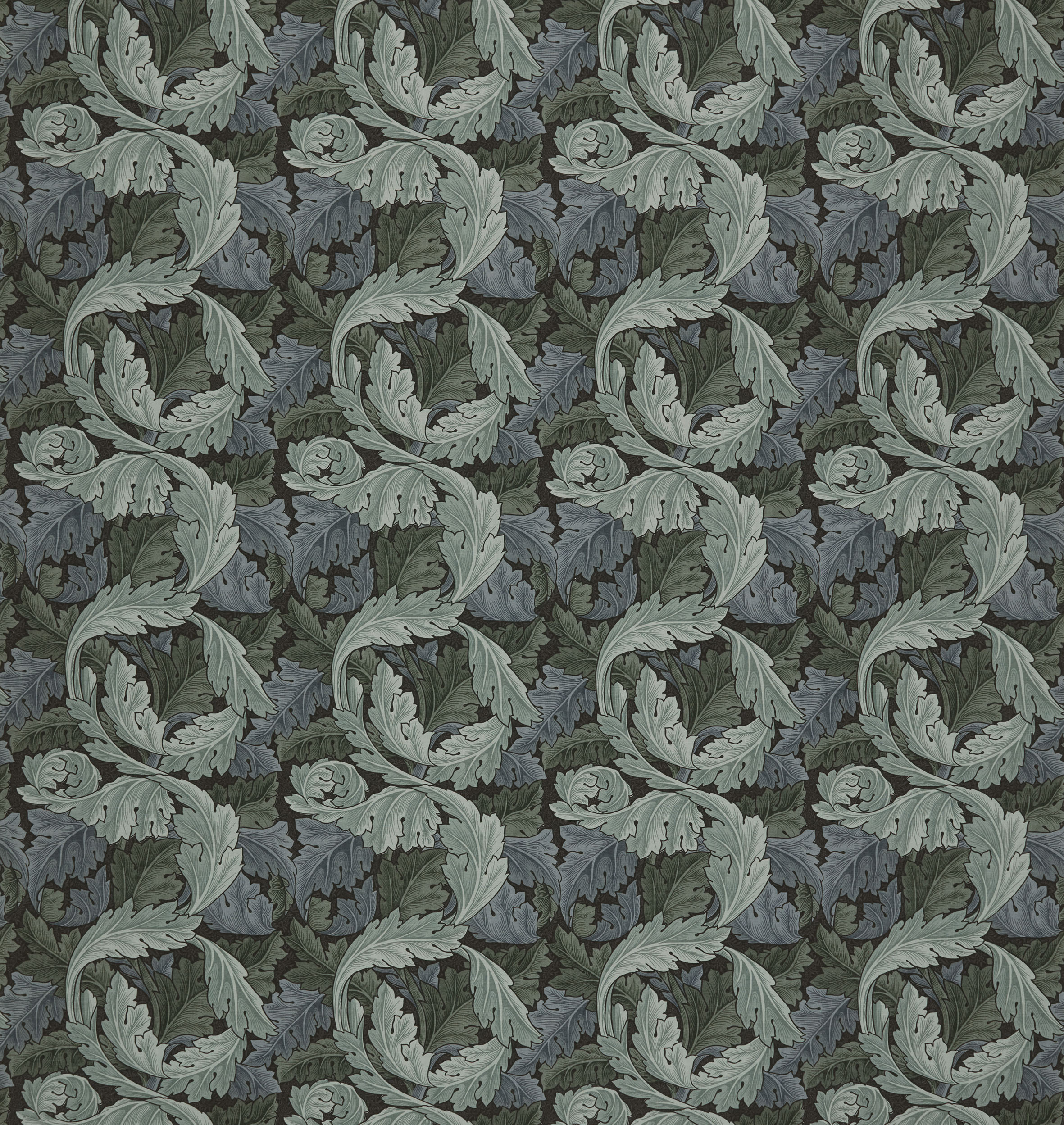 From the gallery at William Morris at Home the Acanthus leaves decorate many of Morris's designs and they take on a central role in his Acanthus pattern. This classical motif lent itself well to repeating patterns and Morris believed that the larger-scale designs particularly suited smaller rooms, creating a more restful atmosphere compared to denser, smaller patterns. The use of soft tonal shades further enhances the design, infusing it with a sense of gentle movement. This design has been printed on 100% cotton.