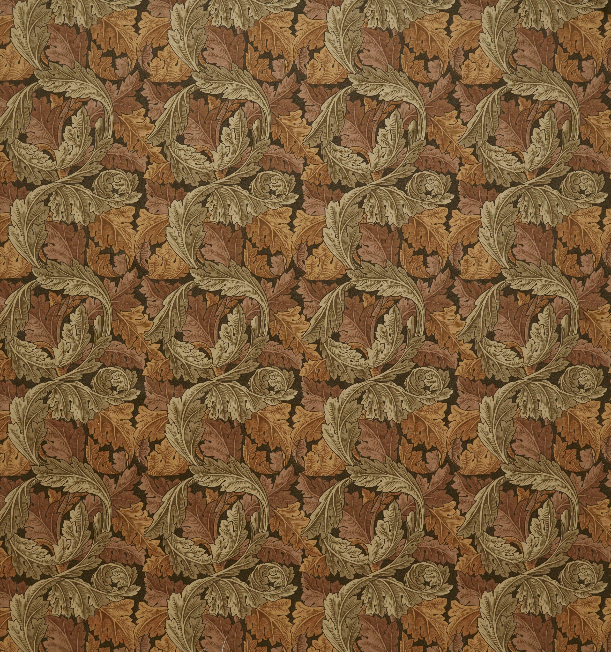 From the gallery at William Morris at Home the Acanthus leaves decorate many of Morris's designs and they take on a central role in his Acanthus pattern. This classical motif lent itself well to repeating patterns and Morris believed that the larger-scale designs particularly suited smaller rooms, creating a more restful atmosphere compared to denser, smaller patterns. The use of soft tonal shades further enhances the design, infusing it with a sense of gentle movement. This design has been printed on a soft velvet.