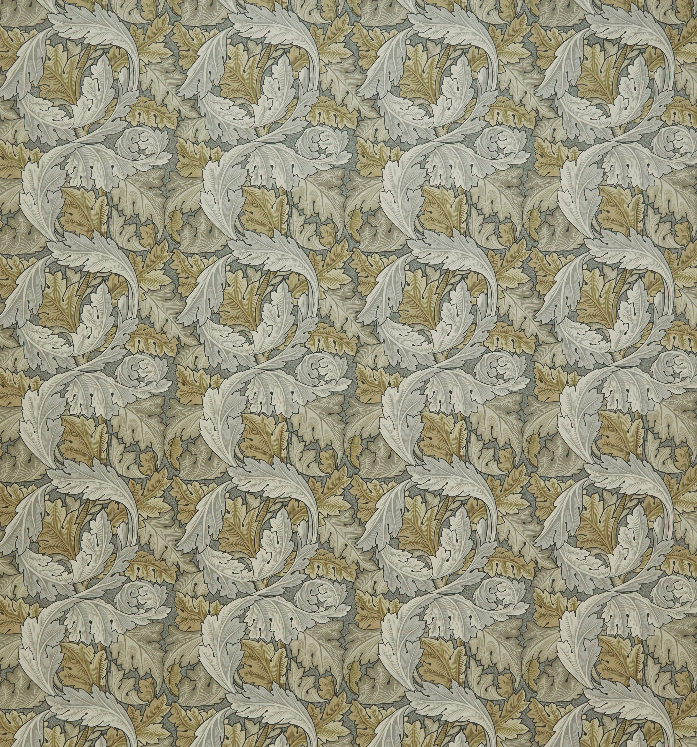 From the gallery at William Morris at Home the Acanthus leaves decorate many of Morris's designs and they take on a central role in his Acanthus pattern. This classical motif lent itself well to repeating patterns and Morris believed that the larger-scale designs particularly suited smaller rooms, creating a more restful atmosphere compared to denser, smaller patterns. The use of soft tonal shades further enhances the design, infusing it with a sense of gentle movement. This design has been printed on a soft velvet.