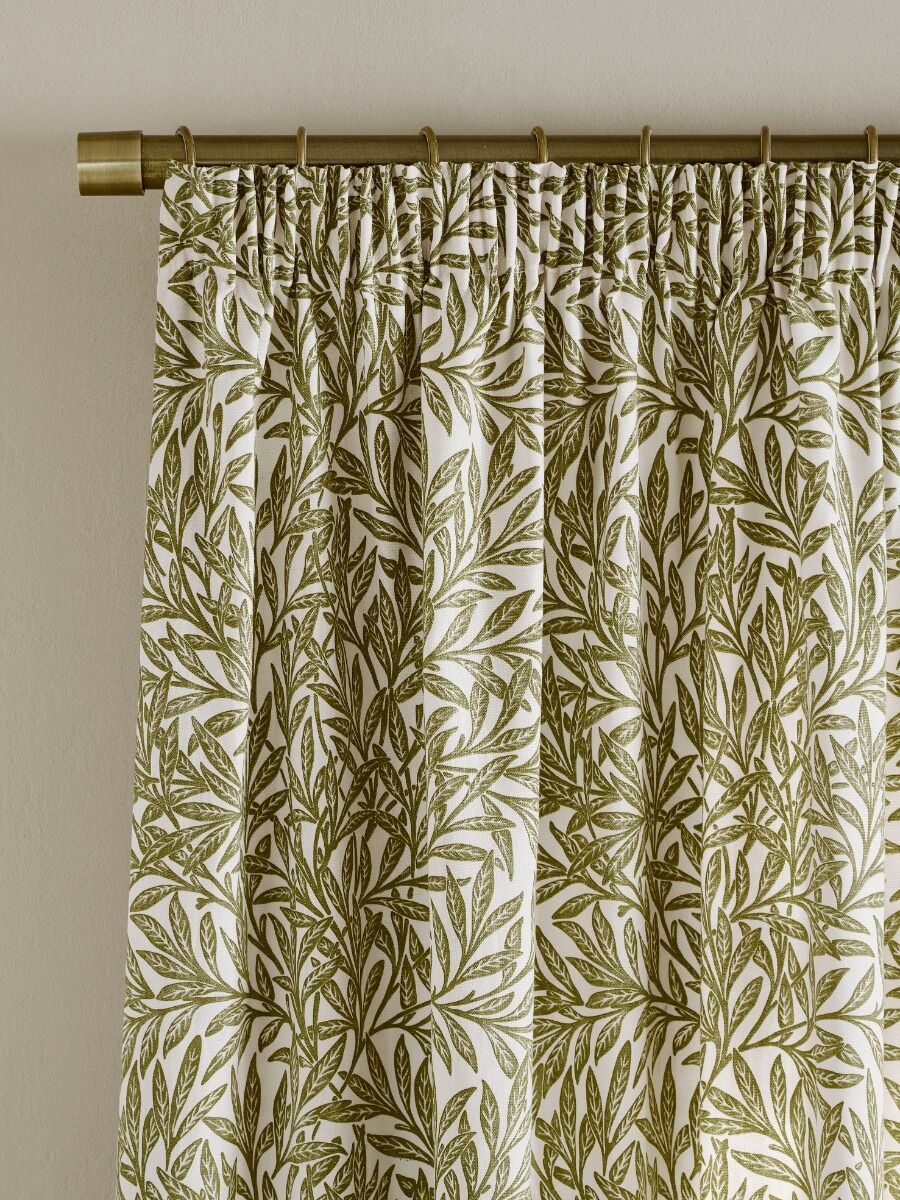 Intwined willow leaves in a flowing upwards movement create a harmonious design that decorates this 100% cotton, pencil pleat curtain. Coloured in a rich olive-green shade and finished with a beautiful, printed lining, this curtain is perfect for bringing a sense of nature’s calm to your home. Willow was designed by William Morris and originally produced as a hand block printed wallpaper in 1874.